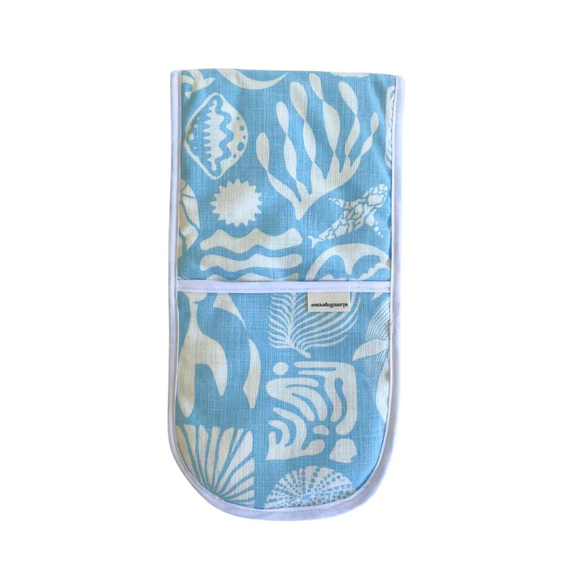 A Love Supreme Joined Oven Gloves - Africa Deep White on Blue