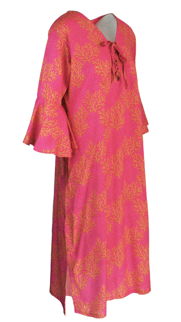 • Load image into Gallery viewer, Pink dress with gold seaweed pattern on a white background