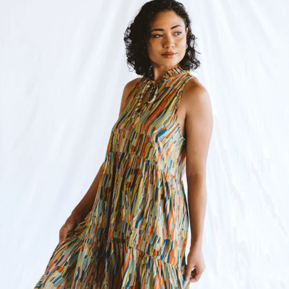 The Rae Short Dress is playful yet elegant, designed for days when you want to feel both comfortable and effortlessly put-together. She’s truly unique, being made from our own in-house designed printed viscose fabric - a perfect choice for those who love colour and individuality. Featuring delicate ties at the neckline, a flattering two-tiered skirt, and pockets. The Rae moves gracefully with every step for a light, flowy feel. Perfect for warmer days, casual outings, or dressed up with heels, Rae’s easy silhouette and charming details make her a versatile favourite in any wardrobe.