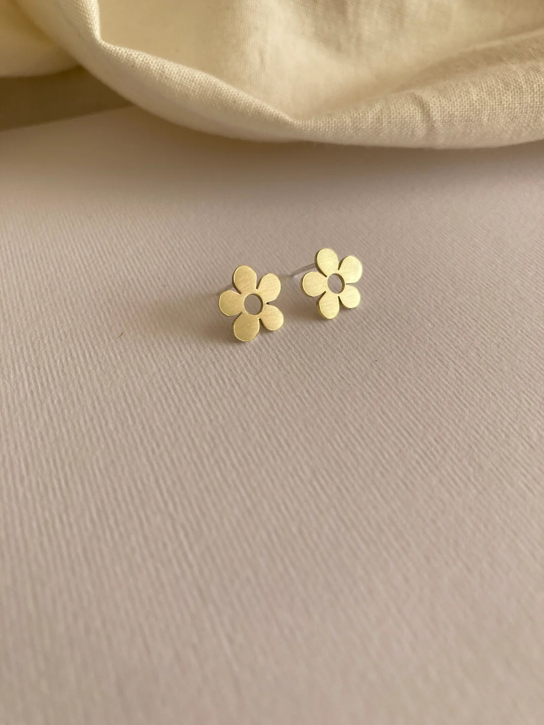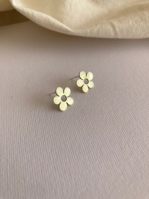 Liwo Brass Daisy Stud Earrings on Sterling Silver Posts
