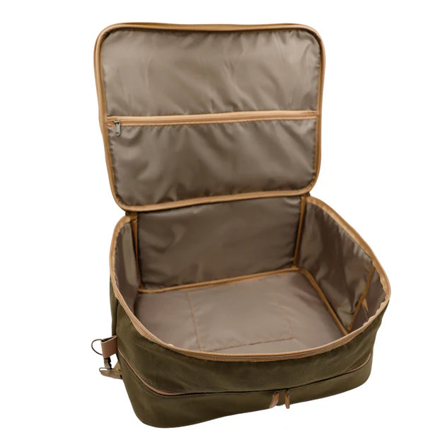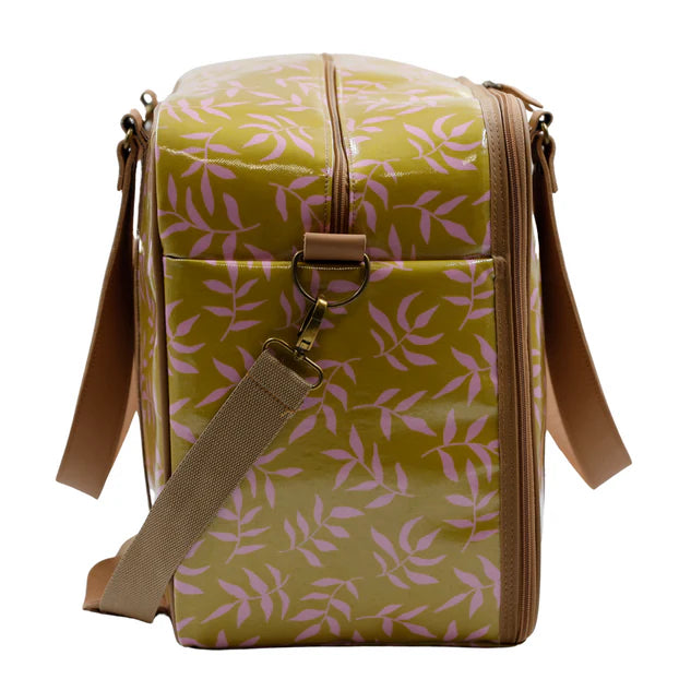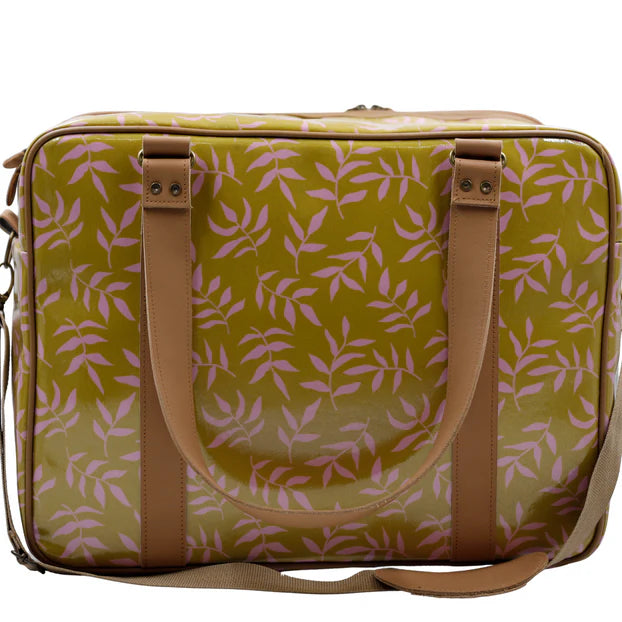 The IY overnight bag has been designed with a dual zip function so it can be opened and zipped up at the top of the bag or you can pack the bag on its side and zip it open and closed using the zip around the outside.. Finally an answer to finding the pair of jeans that you need at the bottom of your bag! It has 3 inner pockets for convenience when packing and an outside feature zip pocket on the front of the bag. The genuine leather handles and detail on the body of the bag together with the antique brass fitting make it a very stylish solution for your travel requirements. The outer fabric is laminated with PVC making it durable and easy to clean.