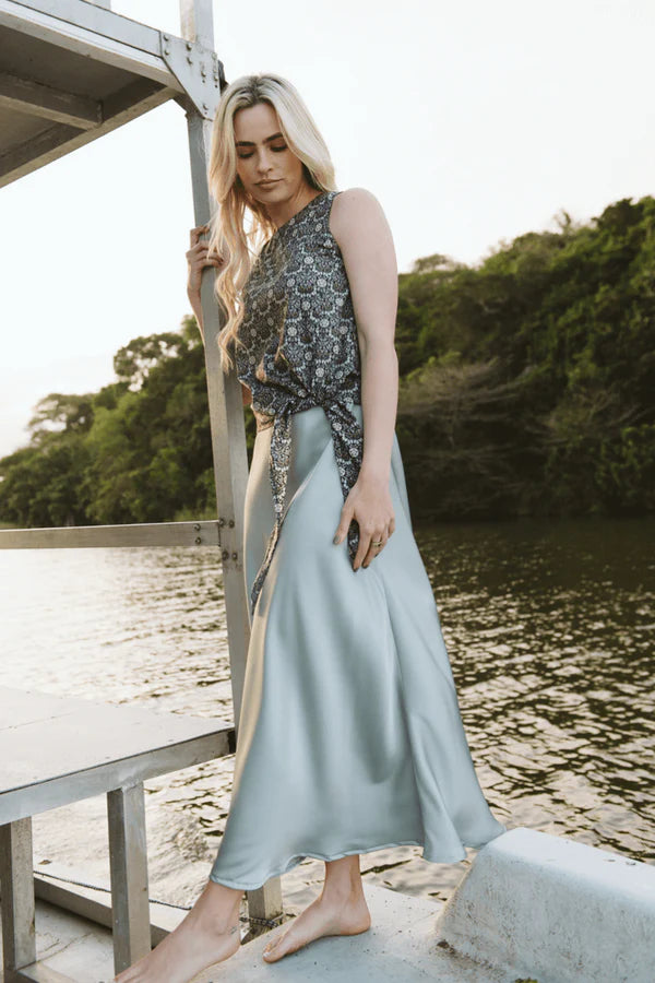 The Bias Cut Satin Skirt is a versatile staple designed to take you from casual days to elegant evenings with ease. With her flattering bias cut, she skims beautifully over the body, creating a fluid silhouette that moves effortlessly. Perfect for pairing with one of our summer vests, she transitions seamlessly from laid-back chic to elevated evening style.