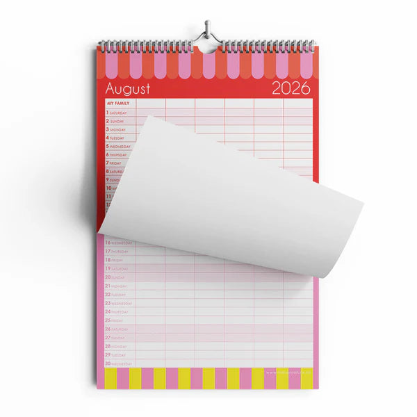 Macaroon 2026 A3 Hanging Family Planner - Circus Stripe