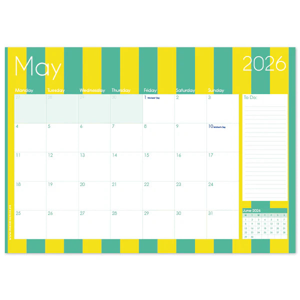 Macaroon A3 Desk Calendar - Circus Stripe
