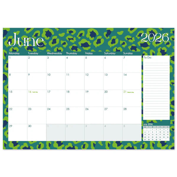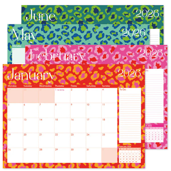 Macaroon's generic desk calendars are an A3, full colour, 13 page desk calendar, this Calendar covers the full Calendar Year - JANUARY to DECEMBER. Organise your family, your tween or your teen's life with these popular desk blotters. This handy product is made up of the year at a glance up front (this can be torn off and pinned up for easy reference), followed by individual pages featuring each month at a glance - with additional space for doodles and notes. The Calendar now has clear PVC Corners on the bottom corners to protect the corners through-out the year.