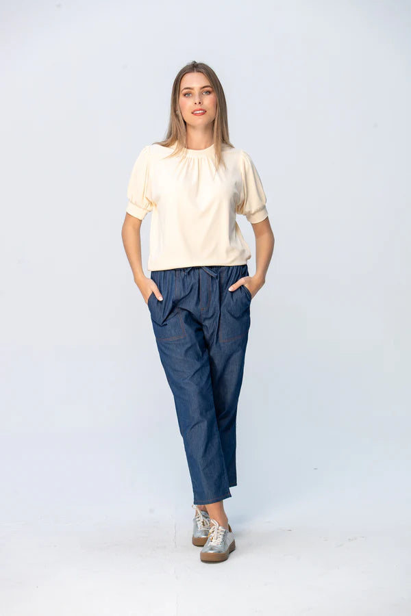 Timeless elegance meets intentional design in Signature's beloved ASPEN SUMMER TEE. This sophisticated piece features refined gauging at the neckline and subtle gathering at the shoulder seam, elevating the everyday staple with thoughtful details.