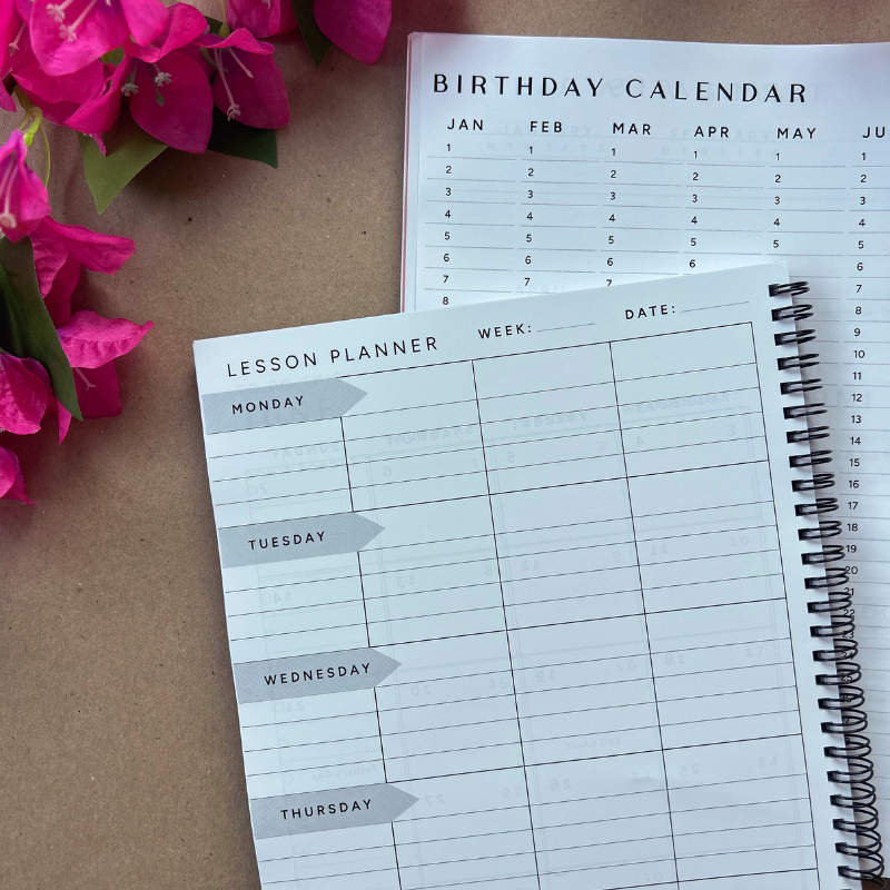 Get Ready to Rock Your School Year with this New Teacher Planner! Say hello to your new best classroom friend! This Teacher Planner is packed with everything you need to keep your teaching life running smoothly. With an awesome weekly lesson plan layout, you’ll have no trouble mapping out your lessons and staying organised. Keep track of student birthdays, manage grades, and remember those important term dates – all in one place! Plus, there’s plenty of room for doodles, meeting notes, and any brilliant ideas that pop into your head. This planner is here to make your year easier and way more fun. Grab yours today!