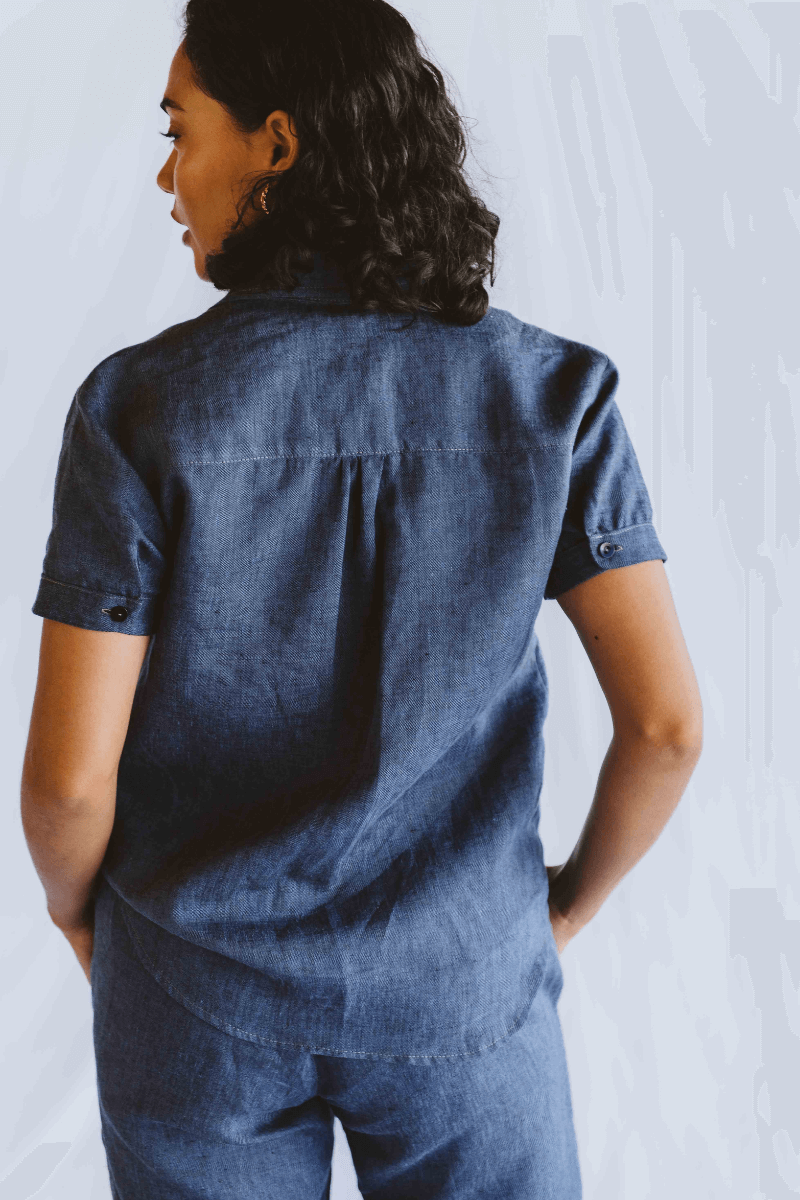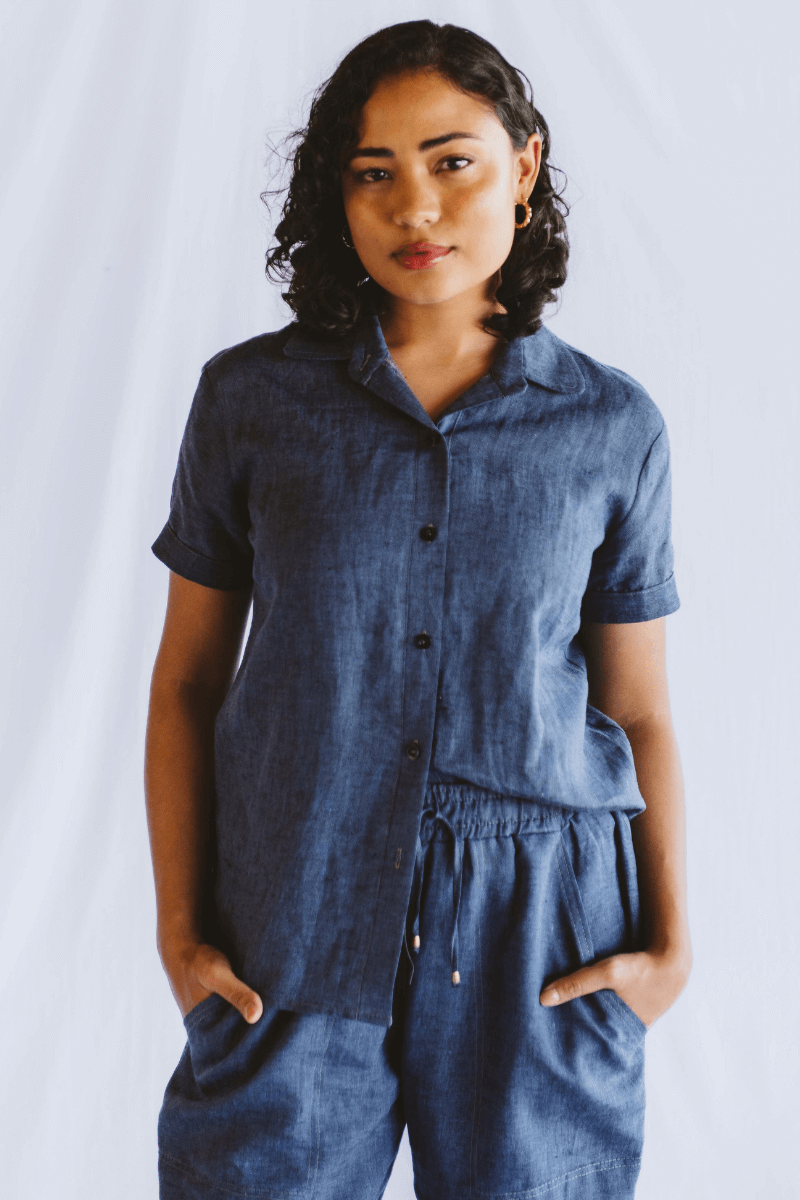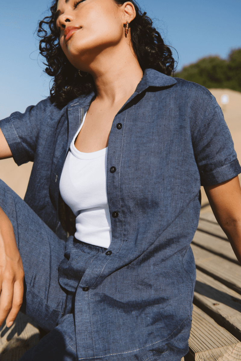 The Dahlia Top is summery, stylish, and effortlessly versatile — the perfect piece for slow summer living. Available in a bright blue, classic navy and white, she features pretty button detailing down the front, a beautiful rounded collar, and button accents on the sleeves. Lightweight and relaxed, she’s easy to style with our Ivy Trousers and a simple vest in white or grey, or throw her over a cozzie on your beach holiday for an easy cover-up. Worn as a set or mixed with your other staples, the Dahlia is designed for laid-back elegance and all-day comfort.