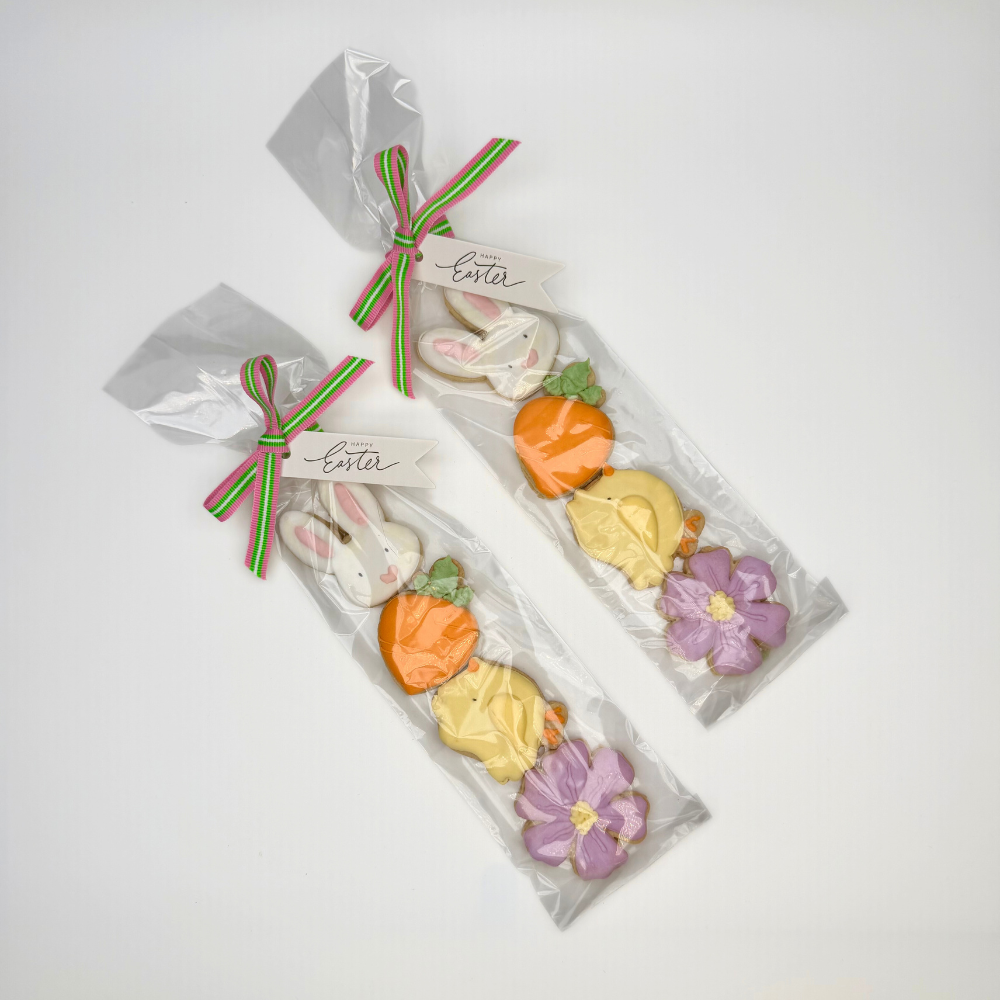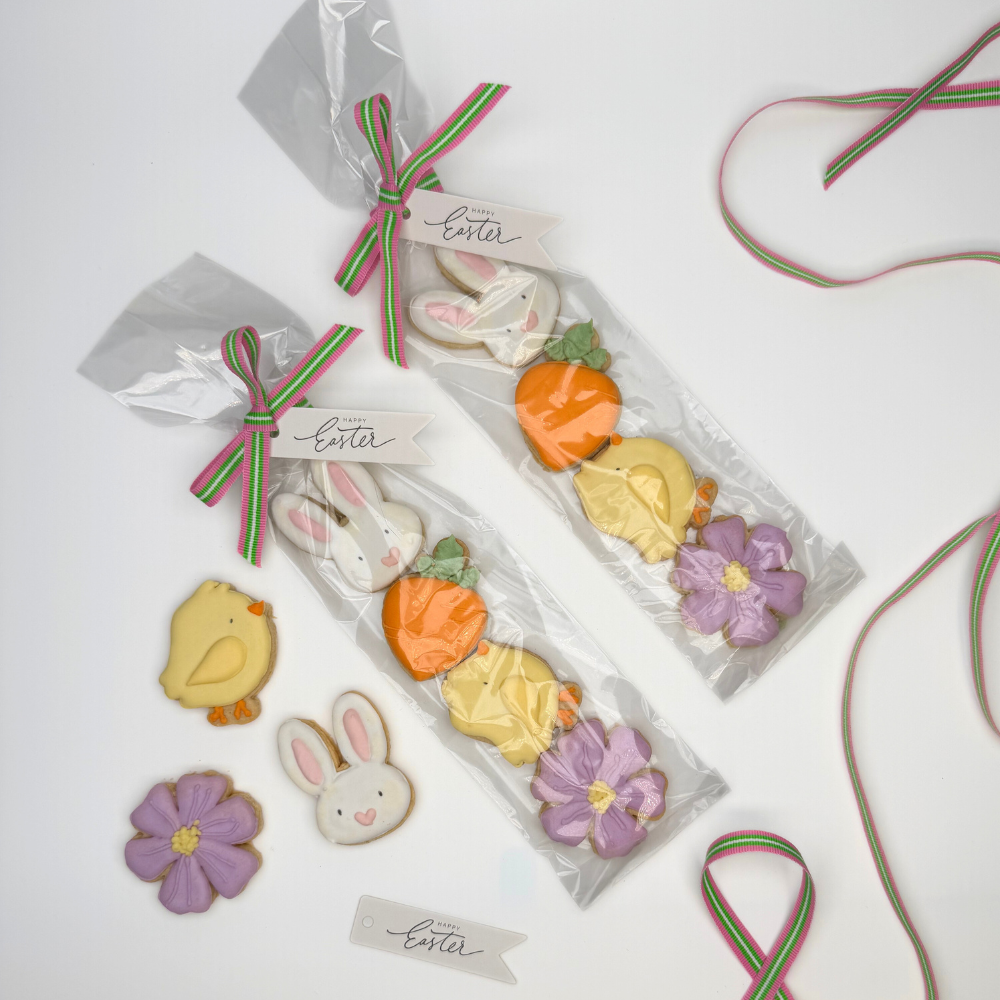 Four beautifully iced easter-themed vanilla biscuits.